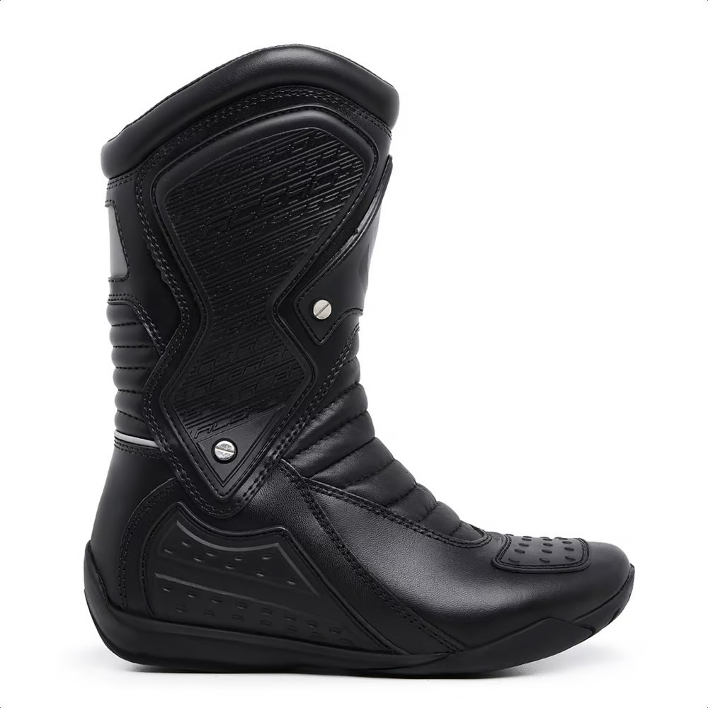 A bota SPEED foi projetada para motociclistas amantes de longas viagens que precisam de um produto confiável e confortável. Composta 100% de couro bovino legítimo, e com proteções de plástico por toda sua volta, ela irá te proporcionar melhor estabilidade e segurança.Contém proteção no tornozelo em dupla densidade sob as camadas microfibra e tecido espumado para maior suporte, com um zíper que acompanha até metade da bota, a outra metade é lacrada com velcro. Sua sola é de borracha costurada ,e lisa fazendo com que assim, sua troca de marcha seja facilitada. Sua palmilha é em GEL PU, com memória infinita e espessura adequada para melhor conforto. Altura aproximada do cano: 31 centímetros. Peso aproximado: 750 gramas (Pé)