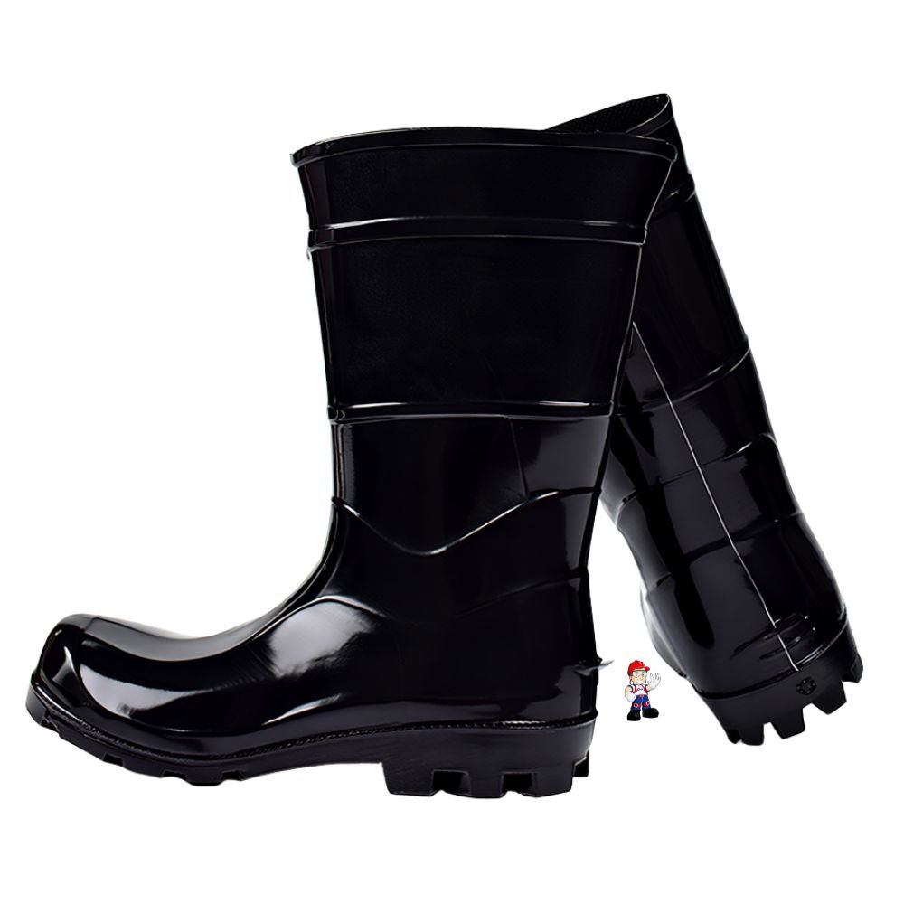 Bota PVC Galocha Unissex Preta 26cm Cano Médio Impermeável Industrial Sem Forro Ideal Lavagem Chuva