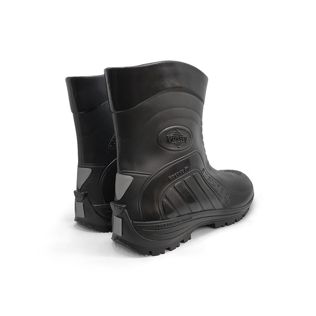 Bota Stradeiro PVC Impermeável Monseg Modelo: BOTA STP Arrojadas, estilosas e funcionais! Estas botas são impermeáveis, protegendo os pés dos usuários contra umidade e sujidade. São exclusivas no mercado, já que oferecem proteção contra risco elétrico. Este modelo é indicado para motociclistas e entregadores que buscam no dia a dia segurança e conforto, por possuir reforço especial na posição do câmbio e pontos refletivos traseiros. É também recomendada para colaboradores de empresas de manutenções elétricas e indústrias em geral. Características: - Bota estilo stradeiro em PVC da Monseg. - Possui cano de 21 cm que facilita o calce e descalce. - Ideal para proteger os pés de chuva, frio, vento e sujeira. - Produzida inteiramente em PVC, material grosso 100% impermeável. - Feita com solado aderente e pequeno recorte refletivo na parte traseira. - Produto extremamente leve e confortável, estilo e proteção alinhados. - Tem proteção reforçada na altura do tornozelo e palmilha em Eva. Tabela de Medidas: 35/36 - Pamilha 25cm | Cano 21cm | Diâmetro 30cm 37/38 - Palmilha 26cm | Cano 21cm | Diâmetro 31cm 39/40 - Palmilha 27cm | Cano 21,5cm | Diâmetro 33cm 41/42 - Palmilha 28cm | Cano 21cm | Diâmetro 33,5cm 43/44 - Palmilha 30cm | Cano 21cm | Diâmetro 34,5cm A Bota Stradeiro PVC Impermeável Monseg pode ser encontrada aqui na Usee Brasil! Sobre a Usee Brasil: A Usee Brasil é uma empresa brasileira que oferece uma variedade de produtos de alta qualidade, desde roupas e acessórios até itens para casa. Tenha uma experiência conosco!
