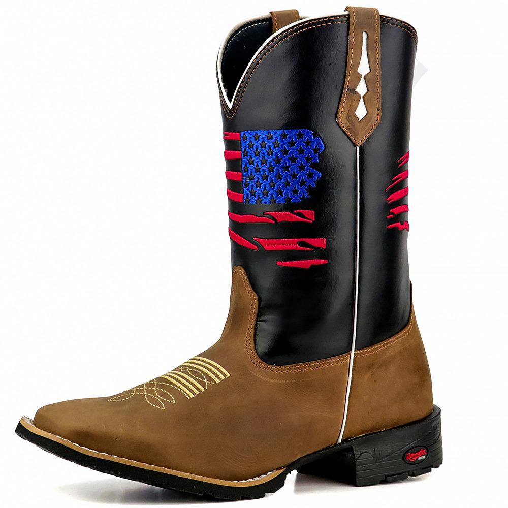 Bota Texana Bico Quadrado Country Em Couro Bordada