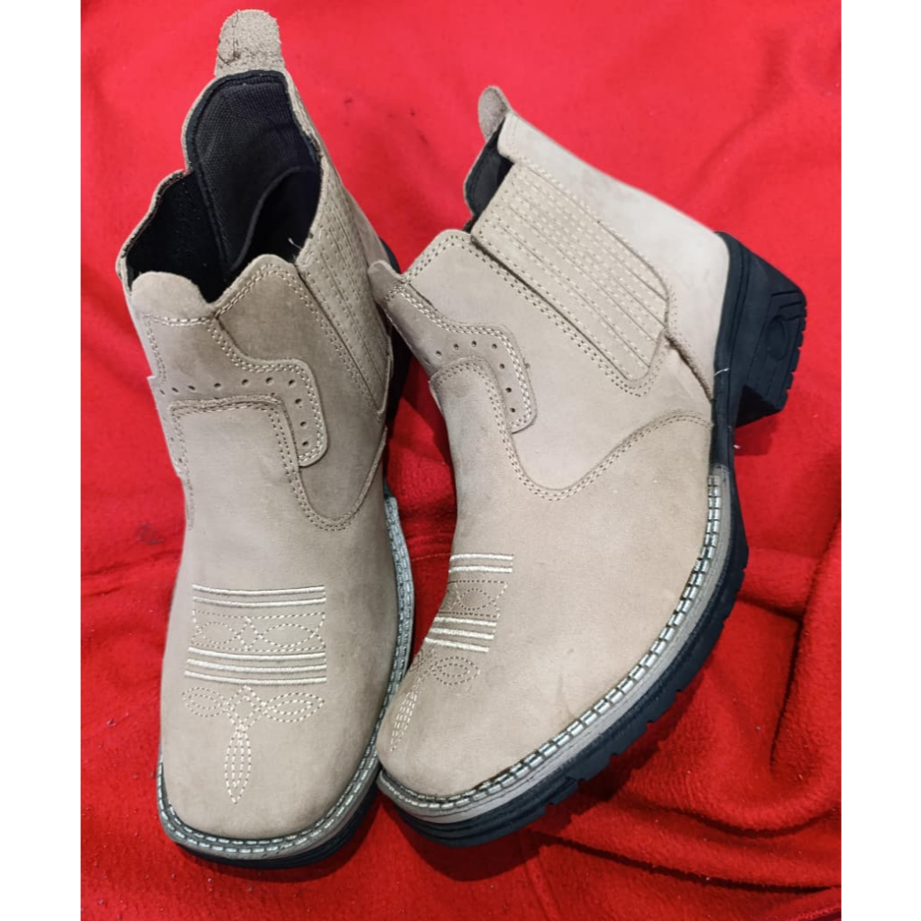 Bota Texana Country Botina Couro Nobuck Legitimo Cano Curto Bico Quadrado Top Envio Imediato