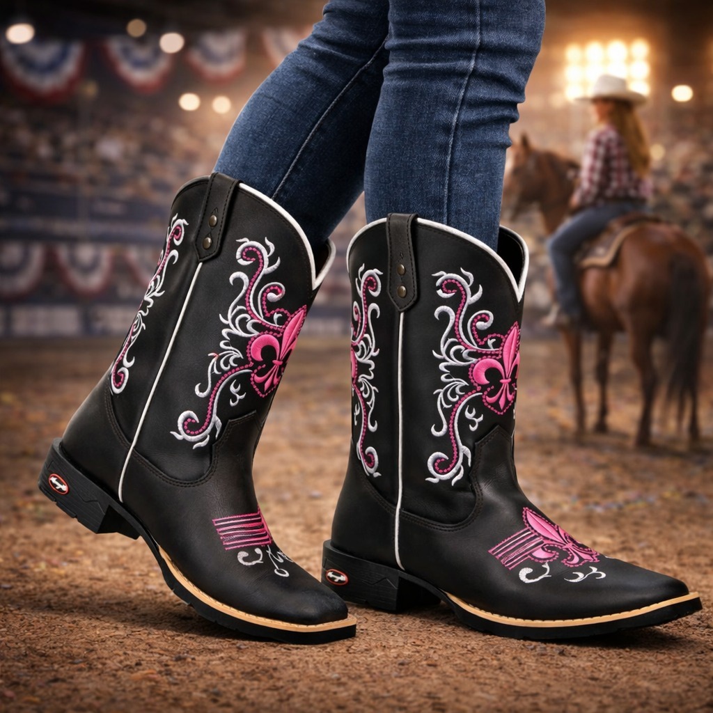 Bota Texana, super confortável, feita em couro Ecológico alta resistência e Durabilidade, com detalhes em bordado de alta qualidade, sempre mantendo a união de estilo e conforto, solado de borracha antiderrapante, colado e costurado. Bico quadrado, costuras reforçadas garantindo durabilidade. -MODELO: BOTA COUNTRY -NUMERAÇÃO: 34 ao 40 -SOLADO: BORRACHA -Bordado 3D -PALMILHA: Espumada - MEDIDAS APROXIMADAS: Altura da sola na ponta do pé 1,5cm. Altura do salto de 4cm. Nº 35 - Palmilha 26,0cm - Sola 27,5cm Altura do Cano 28,5 – Diâmetro Cano 33,5cm. Nº 36 - Palmilha 26,5cm - Sola 28,0cm Altura do Cano 28,5 – Diâmetro Cano 34,0cm. Nº 37 - Palmilha 27,0cm - Sola 28,5cm Altura do Cano 30,5cm – Diâmetro Cano 34,0cm. Nº 38 - Palmilha 27,5cm - Sola 29,0cm Altura do Cano 30,5cm – Diâmetro Cano 35,0cm. Nº 39 - Palmilha 28,0cm - Sola 29,5cm Altura do Cano 31,0cm – Diâmetro Cano 35,0cm. Nº 40 - Palmilha 28,5cm - Sola 30,0cm Altura do Cano 31,5cm – Diâmetro Cano 36,0cm.