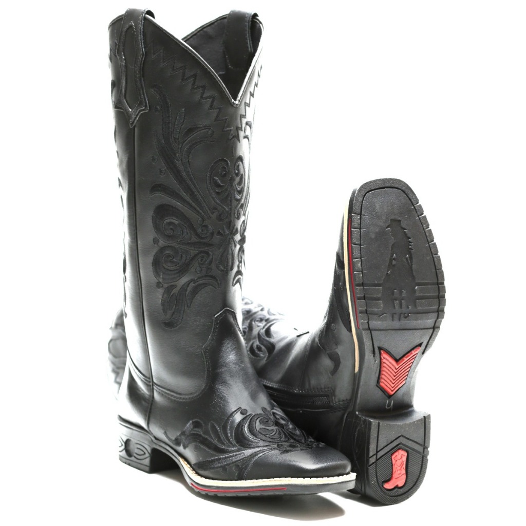 Bota Texana Couro Legitimo Feminina Trib All Black Country Botina Festa de Peão Lançamento
