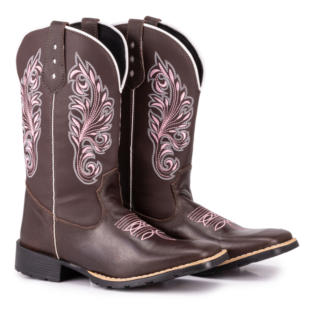 Bota Texana Feminina Country Bico Quadrado Florzinha