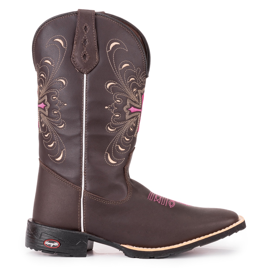 Bota Texana Feminina Cruz Rosa Bico Quadrado Country