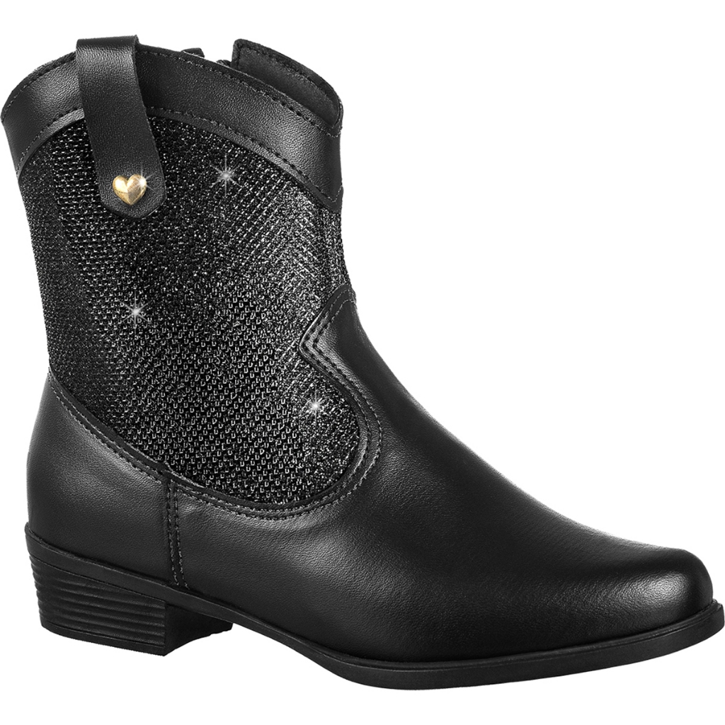 Bota Texana Infantil Feminina GiGiL Teen Country Saltinho Baixo Médio Cano Curto Confortável Glitter Brilhante