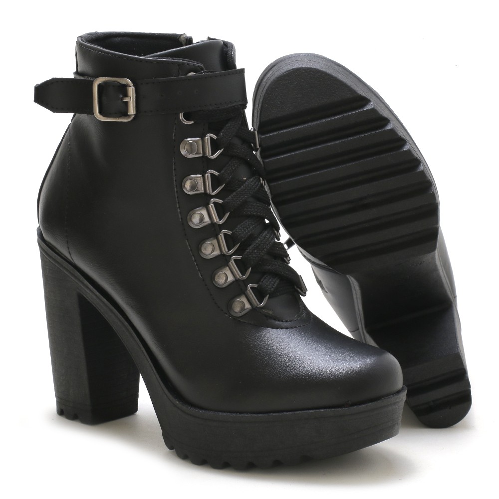 Bota Tratorada Feminina Salto 9cm Com Fivela Firmeza ao Caminhar