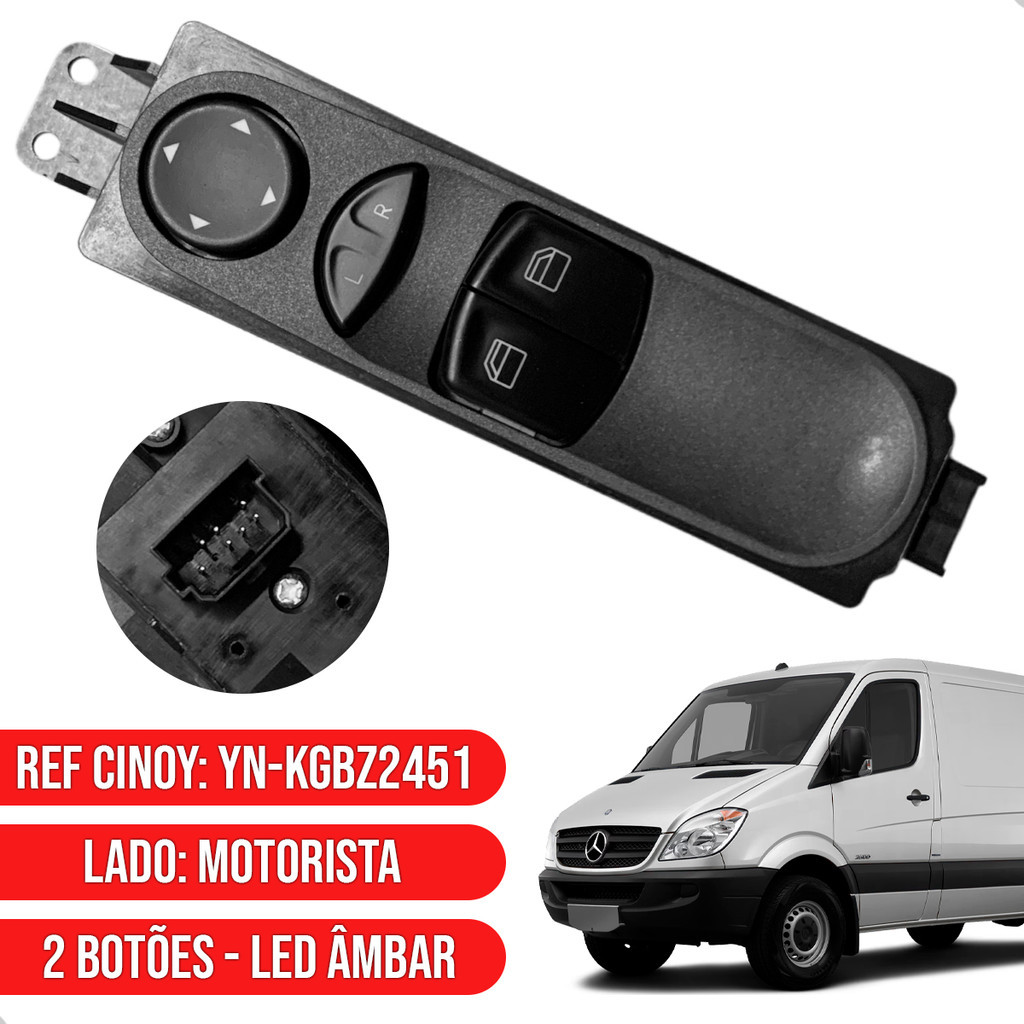 Botão Duplo Vidros Elétricos Mercedes Sprinter 311 415 515 com Conector Único 2013>