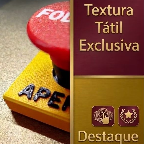 Acabamento Textura Premium Imagens Reais do Produto Brinquedo para Aliviar Stress 🚀 Presença e Impacto Visual Este modelo foi projetado para ser o centro das atenções. Escala Realista: O tamanho ampliado não é apenas estético; ele simula a ergonomia de um botão de emergência industrial real, oferecendo uma experiência tátil muito mais satisfatória. Cores Vibrantes: Utilizamos pigmentação de alta densidade no filamento, garantindo um amarelo "segurança" e um vermelho "alerta" que não desbotam e saltam aos olhos. 🛠️ Qualidade de Construção (Premium) Enquanto concorrentes oferecem tamanhos menores para economizar material no preenchimento, o nosso a base é mais larga facilitando você "apertar o foda-se" com vontade. Exclusivo: O acionamento interno contém Switch de Teclado Mecânico que faz o barulho do Click ao apertar o botão. Amigos do trabalho, escola, familiares, todos vão querer apertar o seu BOTÃO. Uma brincadeira divertida e descontraída. Alivie todo seu Stress. Aperte o FODA-SE e seja Feliz! Fidget Toy com Switch mecânico um brinquedo para aliviar o Stress