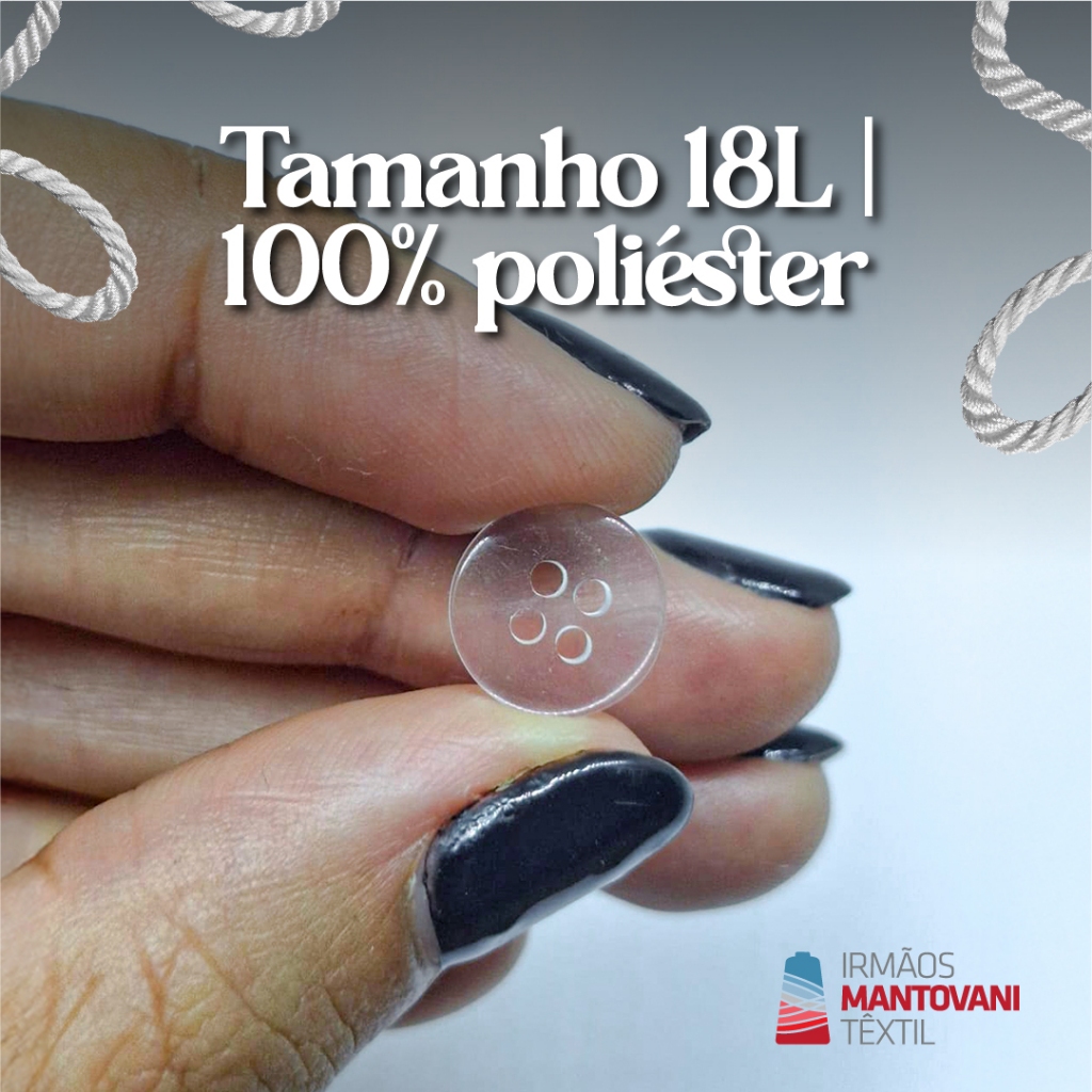 ✨ Versatilidade total para suas peças com acabamento invisível! O botão transparente 18L é ideal para quem busca um acabamento discreto e funcional em projetos de costura ou artesanato. 🛠️ Benefícios: • Cor neutra e discreta – combina com qualquer tecido • Modelo com 4 furos: costura firme e segura • Ótima opção para camisaria, roupas leves e artesanato • Pacote com 720 unidades – economia para produção em volume • Produto de envio rápido e excelente custo-benefício 📦 📦 Características Técnicas: • Cor: Transparente • Tamanho: 18L • Tipo: 4 furos • Quantidade: 720 unidades (equivale a 5 grossas) • Material: Plástico durável e leve 🧵 Aplicações recomendadas: • Camisas e camisetas • Peças infantis e delicadas • Artesanato, costura criativa e customizações • Reposição de aviamentos ❓ Dúvidas Frequentes (FAQ): Esse botão combina com qualquer tecido? Sim! Por ser transparente, se adapta a qualquer cor ou estampa. É resistente para o dia a dia? Sim, o plástico é durável e ideal para lavagens frequentes. A quantidade é mesmo 720 unidades? Sim, equivale a 5 grossas – ideal para uso em escala. 🛍️ Compre agora e otimize seus projetos! Facilidade, economia e acabamento perfeito com um botão que combina com tudo. 🧵 Aproveite já e garanta o seu pacote!