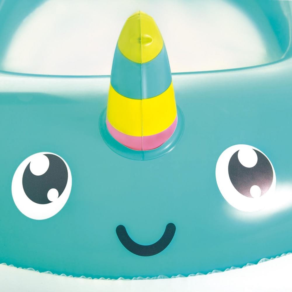 O Bote Infantil Peixe-unicórnio chegou para realizar os sonhos dos papais de se divertir com os pequenos em segurança na piscina ou no mar, sem preocupação. Com espaço para sentar, ela é ideal para a supervisão das crianças. Suportando até 30kg, é confeccionada em vinil resistente, possui 1 câmara de ar independente, 1 válvula de segurança e acompanha adesivo para reparo para aumentar sua vida útil. Recomendada para crianças maiores de 3 anos, perfeita para curtir os melhores momentos do verão! Atenção! Este não é um equipamento salva-vidas. Nunca deixe crianças sozinhas perto da água sem supervisão de um adulto.