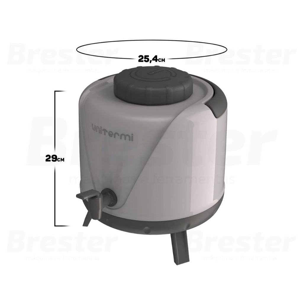 Olá, Bem vindo a Distribuidora Brester. Trabalhamos com uma grande variedade de ferramentas elétricas e manuais, descartáveis, eletroeletrônicos, artigos para casa, artigos de petshop e outros. Aqui você encontrará Produtos Originais, Nota Fiscal, Pronta Entrega e Envio Imediato! * Características do produto * Botijão Garrafão Térmico Arezzo 5 Litros Unitermi O Botijão Arezzo é um produto com parede dupla e isolamento térmico em Poliuretano. Fabricado com material d alta resistência, livre de BPA, superfície lisa e fácil limpeza. Produto apresenta excelente design com sua alça integrada, facilitando o manuseio e o transporte, além dos pés retráteis, o que torna o produto fácil de servir em qualquer ambiente. Tempo de conservação de aproximadamente 6 a 8 horas. A tampa superior permite fácil acesso ao interior da garrafa, facilitando a limpeza, além de permitir a entrada de pedras de gelo em tamanho maior. Ideal para levar na praia, piscina, Camping, Coffee Break, Entre Outros Características Técnicas: > Abertura superior grande > Possui pé dobrável e alça > Com torneira > Material: Poliuretano e Plástico > Medidas com Pé (Axø): 28,5cm x ø25cm > Medidas sem Pé (Axø): 23cm x ø25cm > Capacidade: 5 Litros > Diametro Abertura: ø11cm > Peso Unitário: 0,796kg Toda garrafa térmica, independente de marca e modelo, deve ser aquecida com água fervente antes do uso. - Marca: Unitermi - Garantia: 90 dias contra defeitos de fabricação Vantagens de comprar na Brester: - Nota fiscal para Pessoa Física e Pessoa Jurídica. - Produto novo, com garantia de fábrica. - Produto a pronta entrega. - Envio em até 24hs em dias úteis após confirmação do pagamento. Obrigado por escolher a Brester Máquinas.