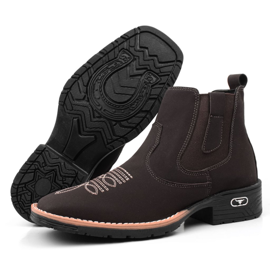 Botina Bota Masculina Country Bico Quadrado Bordada Texana Cowboy Rodeio Boiadeiro Fazenda