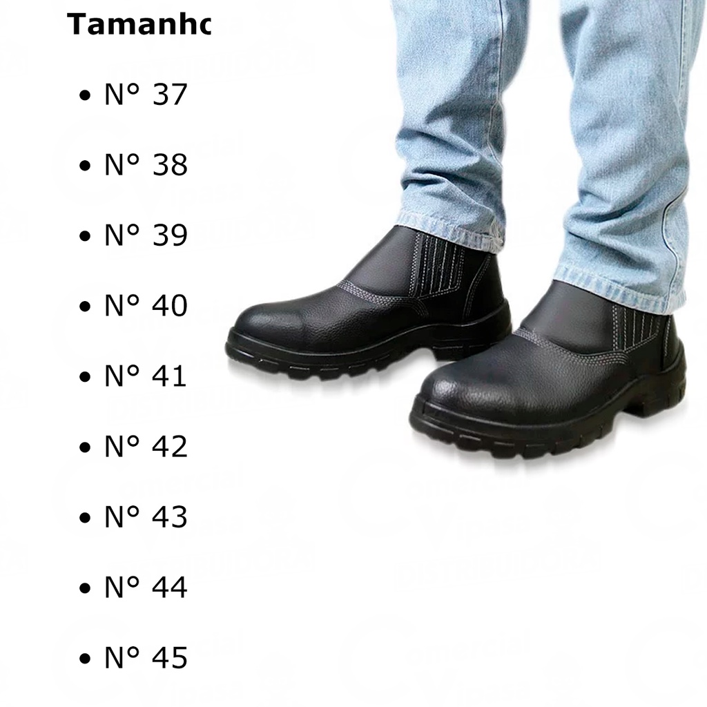 COMERCIAL VIPASA DISTRIBUIDORA. Botina de Segurança Preta com Elástico Sem Bico Mono 003336 Sul – Conforto e Proteção para o Trabalho Descrição Geral: A Botina de Segurança Preta com Elástico Sem Bico Mono 003336 Sul é ideal para quem busca proteção, durabilidade e conforto no ambiente de trabalho. Desenvolvida para oferecer segurança e resistência, essa botina é fabricada em couro legítimo, garantindo alta durabilidade e proteção contra impactos, respingos e agentes externos. Seu design sem cadarço, com elásticos laterais, proporciona um calce fácil e rápido, além de um ajuste firme e confortável aos pés. O solado de poliuretano (PU) bidensidade oferece ótima aderência, resistência ao desgaste e excelente absorção de impactos, reduzindo a fadiga durante o uso prolongado. Disponível nos tamanhos 37 ao 45, atende profissionais de diversas áreas, sendo ideal para construção civil, indústrias, prestadores de serviço, agronegócio, almoxarifados, mecânicos, eletricistas e mais. Principais Características: ✔ Couro Legítimo – Alta resistência e durabilidade ✔ Elásticos Laterais – Fácil de calçar e retirar ✔ Solado em PU Bidensidade – Antiderrapante e resistente a óleo e abrasão ✔ Palmilha Confortável – Redução de impacto e fadiga ✔ Design Anatômico – Ajuste perfeito aos pés ✔ Sem Bico de Aço – Leveza e conforto para longas jornadas ✔ Certificação de Segurança – Atende às normas exigidas Especificações Técnicas: Marca: Sul Modelo: 003336 Mono Material Externo: Couro legítimo Fechamento: Elástico lateral Solado: Poliuretano (PU) bidensidade, antiderrapante Palmilha: EVA anatômica, confortável e absorvente Bico: Sem biqueira de aço (Mono) Cores: Preto Disponibilidade de Tamanhos: 37, 38, 39, 40, 41, 42, 43, 44 e 45 Indicação de Uso: Construção civil, indústria, manutenção, serviços gerais, almoxarifado, logística, entre outros Vantagens do Produto: ✅ Maior Conforto e Segurança: Palmilha macia e solado antiderrapante garantem firmeza ao caminhar ✅ Durabilidade Garantida: Couro legítimo com alta resistência ao desgaste ✅ Fácil de Calçar: Sistema com elástico lateral permite colocação rápida ✅ Leve e Ergonômica: Ideal para uso prolongado sem causar fadiga nos pés ✅ Proteção no Ambiente de Trabalho: Redução de riscos de escorregamento e impactos Indicações de Uso: 🔧 Construção Civil – Proteção e segurança para trabalhadores da área 🏭 Indústrias e Almoxarifado – Ideal para uso diário em fábricas e estoques 🚜 Agronegócio – Resistente para uso em fazendas e campos 🔩 Oficinas Mecânicas e Autopeças – Conforto e resistência no ambiente automotivo 🔋 Eletricistas e Prestadores de Serviço – Leve e segura para o dia a dia Modo de Uso e Cuidados: 1️⃣ Escolha o Tamanho Ideal: Confira a numeração disponível (37 ao 45) 2️⃣ Calce com Facilidade: O elástico lateral permite um ajuste rápido 3️⃣ Use em Ambientes Apropriados: Protege contra impactos e agentes externos 4️⃣ Mantenha a Conservação: Limpe com pano úmido e evite produtos químicos agressivos 5️⃣ Evite Exposição Excessiva à Água: Embora resistente, a secagem natural prolonga sua vida útil Conteúdo da Embalagem: 📦 1 Par de Botinas de Segurança Preta com Elástico Sem Bico Mono 003336 Sul Dimensões e Peso (Aproximado para o Par – Tamanho 40): Altura: 12 cm Largura: 10 cm Profundidade: 30 cm Peso: 1,2 kg Botina de segurança preta com elástico Botina de couro sem bico de aço Bota de segurança para construção civil Calçado de proteção para trabalho Botina antiderrapante para indústrias Botina para almoxarifado e logística Calçado de segurança sem cadarço Botina de couro resistente e confortável Botina PU bidensidade preta Sul Equipamento de proteção individual (EPI) ✅ Botina de Segurança Couro Preto c/ Elástico Sem Bico Mono Sul – Num 37 ao 45 ✅ Bota de Segurança Trabalho em Couro Preto Sem Bico de Aço Sul – Conforto e Resistência ✅ Botina Preta de Couro com Elástico – Modelo Sem Bico Sul ✅ Calçado de Segurança Industrial Botina Preta com Elástico – Tamanhos 37 a 45 ✅ Botina de Segurança PU Bidensidade Preta Sul – Sem Bico de Aço COMERCIAL VIPASA DISTRIBUIDORA