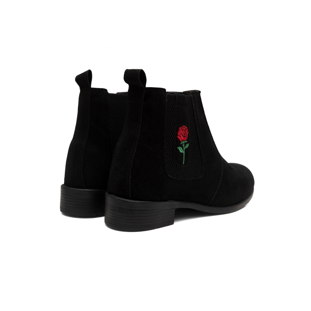 Botina Chelsea Feminina Country Cano Curto Com Bordado De Rosa Elegante