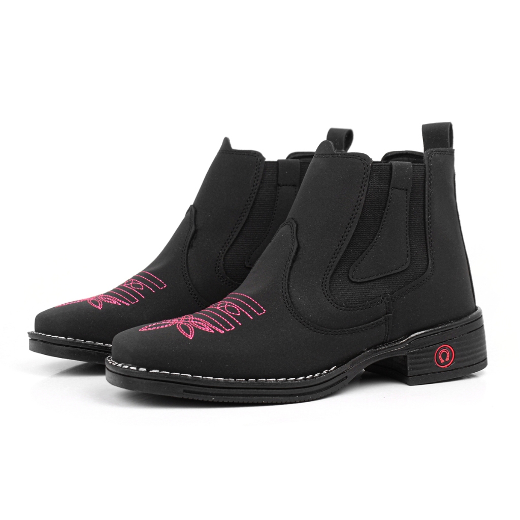 Botina Country Feminina | Bordado Rosa e Bege | Confortável e Estilosa
