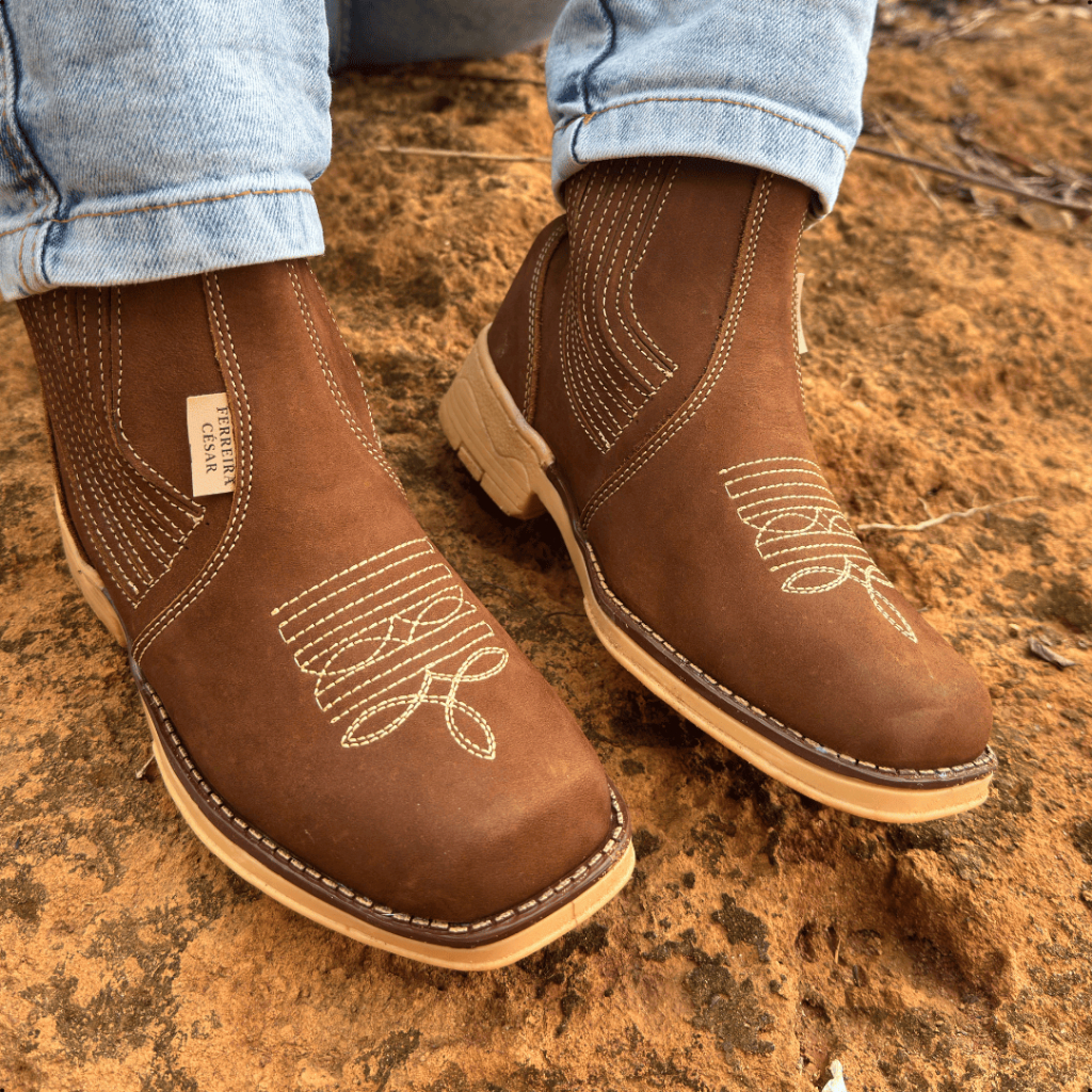 Botina De Couro Feminina Rodeio Ferreira César Vira Francesa Butina Cowboy Cavalgada Solado Látex