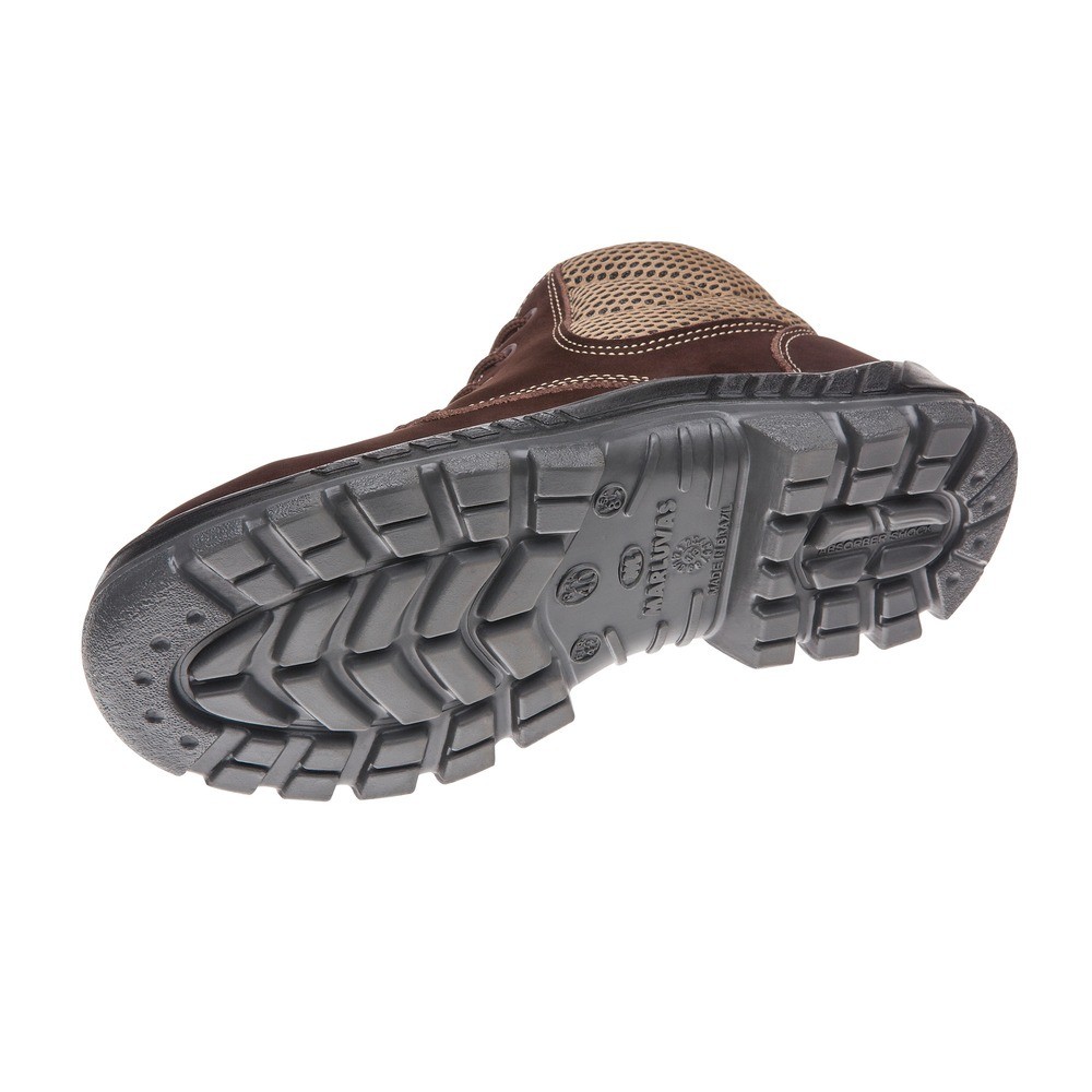 Produto: Botina em couro nubuck com cardaço marrom -Trekking Marluvas Marca: Marluvas Descrição: A Botina em Couro Nubuck com Cadarço Marrom Trekking da Marluvas é projetada especialmente para profissionais das áreas de construção civil e serviços gerais, este calçado eleva os padrões de segurança e conforto. O couro nubuck de alta qualidade garante durabilidade e um visual estético, enquanto o design foca no suporte e proteção essencial ao usuário. Características principais: - Couro Nubuck: Espessura de 18 a 20 linhas oferece resistência e conforto. - Sola de Poliuretano Bidensidade: Combina uma camada macia para conforto (densidade de 0,4g/cm³) e uma camada compacta resistente à abrasão (densidade de 1,0g/cm³), com aderência excepcional evitando deslizamentos. - Biqueira de Proteção: Disponível em polipropileno, protege contra quedas de objetos. - Forração Interna Air Comfort: Tecnologia antibacteriana que impede o acúmulo de suor, mantendo os pés secos e saudáveis. - Palmilha Higiênica Soft Comfort: Em EVA com tratamento antifungo/antibacteriano, possui micropontos que absorvem o suor. Vantagens adicionais: - Alta resistência ao escorregamento, certificado SRC, seguro para pisos cerâmicos e de aço. - Lingueta e colarinho acolchoados para maior conforto ao redor do tornozelo. - Fechamento em cadarço para um ajuste seguro e personalizado. - Peso leve de apenas 0,410 Kg por pé facilitando a mobilidade. Especificações: Material: Couro nubuck Material da Biqueira: Polipropileno (Plástico injetado em polipropileno, com espessura de 1,5mm. Obs: este tipo de biqueira não tem as mesmas características de segurança do que a biqueira de aço.) Material do solado: PU bidensidade Forração interna: Sim Palmilha antibacteriana Cor: Marrom Certificado de aprovação (CA): 45611 Peso por pé de calçado: 0,410kg (Aproximadamente) Altura do cano: 114 mm (Obs: A altura do cano é baseada no calçado de numeração 40, podendo ter uma variação de 3,33mm por número). Peso: 0.53 Kg