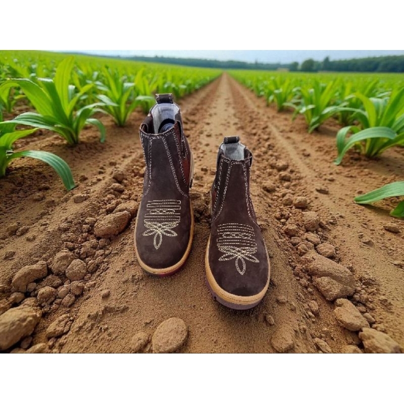 Botina em couro legítimo,toda forrada por dentro. Com palmilha macia, e solado de boa qualidade. O solado e colado e costurado na máquina.