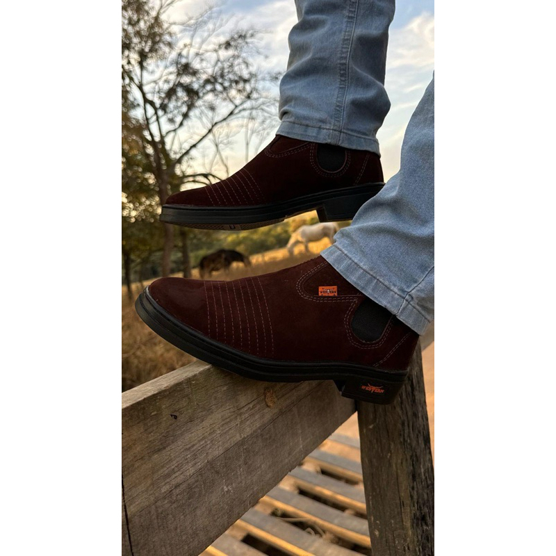 BOTINA WESTERN BOOTS LANÇAMENTO Linda Bota Western Boots Original Modelo Novo, qualidade e conforto para os seus pés. A Botina Oficial da Vaqueirama Vaquejada! Toda pontilhada na lateral com design e estilo bonito. O solado é todo costurado que gera maior durabilidade. O cano tem elásticos nas laterais para maior conforto na hora de calçar. TROCA, DEVOLUÇÃO E REEMBOLSO A troca do produto é um processo de devolução. Você vai no detalhe do pedido, solicita a devolução e informa o motivo: É do tamanho escolhido, porém não serviu. Após a devolução você recebe o dinheiro de volta para fazer a nova compra no tamanho/cor desejado. INDICAÇÕES DE USO Uso casual, festas e shows, trabalho, vaquejada e esportes equestres. Combina bem com calça jeans e roupas básicas. Vaquejada, Forró, Sertanejo, Country, Rodeio e mais. DICAS DE LIMPEZA E CUIDADOS Veja alguns cuidados especiais para manter a sua bota ou botina sempre conservada: 1. Nunca lave. O couro tem a aplicação de um verniz que tonifica e proporciona brilho na coloração e ao lavar esse verniz é retirado, danificando o produto. 2. Limpe a lama ou poeira com um pano leve ou com escova de pelo. Nunca lave a bota ou aplique água. 3. Retoque a cor da Botina com posta de engraxar da cor da bota. 4. Secar sempre na sombra. Não utilize nenhum aparelho como fonte de calor para a secagem, pois ressecará o couro. 5. Use a bota em dias alternados, isso fará com que o produto respire, secando o suor que ficou no calçado. CARACTERÍSTICAS > Marca: Western Boots > Gênero: Masculino e Feminino (Unissex) > Tipo de calçado: Botas > Estilo: Botina country > Tipo de cano: Curto > Material: Couro Nobuck > Solado: Borracha > Palmilha: Fibra > Cores: Café/Preto/Milho/Ferrugem > Produto customizado: Não TABELA DE MEDIDAS, aproximadas: 36 - 23,0 cm 37 - 24,0 cm 38 - 24,5 cm 39 - 25,5 cm 40 - 26,5 cm 41 - 27,0 cm 42 - 28,0 cm 43 - 29,0 cm