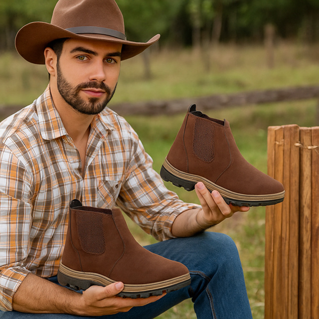 Se você busca uma bota resistente, confortável e estilosa, esse lançamento de 2025 é perfeito para você! Produzida em couro camurça legítimo, essa bota se destaca pelo design robusto e solado, proporcionando mais segurança e estabilidade ao caminhar. Número do calçado medida da palmilha 37 26 38 26.3 39 26.50 40 27.50 41 28 42 29 43 29.5 44 30 A medida é realizada a partir da palmilha do calçado Diferenciais do modelo: Couro legítimo de alta qualidade Solado tratorado antiderrapante Conforto e durabilidade incomparáveis Disponível nas cores: tabaco e preto. Produto testado e aprovado no mercado, garantindo o melhor custo-benefício para quem valoriza qualidade e resistência. Sua compra é 100% segura, com garantia e proteção contra qualquer problema na entrega. Ficou com alguma dúvida? Pergunte-nos, estamos prontos para ajudar! Estoque limitado! Aproveite e garanta já a sua!
