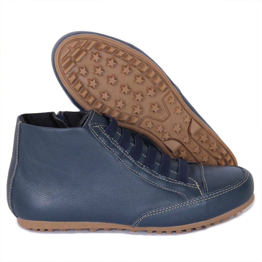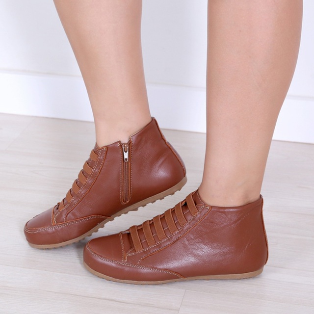 Botinha Casual Feminina Rasteira Em Couro Legítimo De Ajuste Elástico e Zíper Confortável Para o Seu Dia a Dia