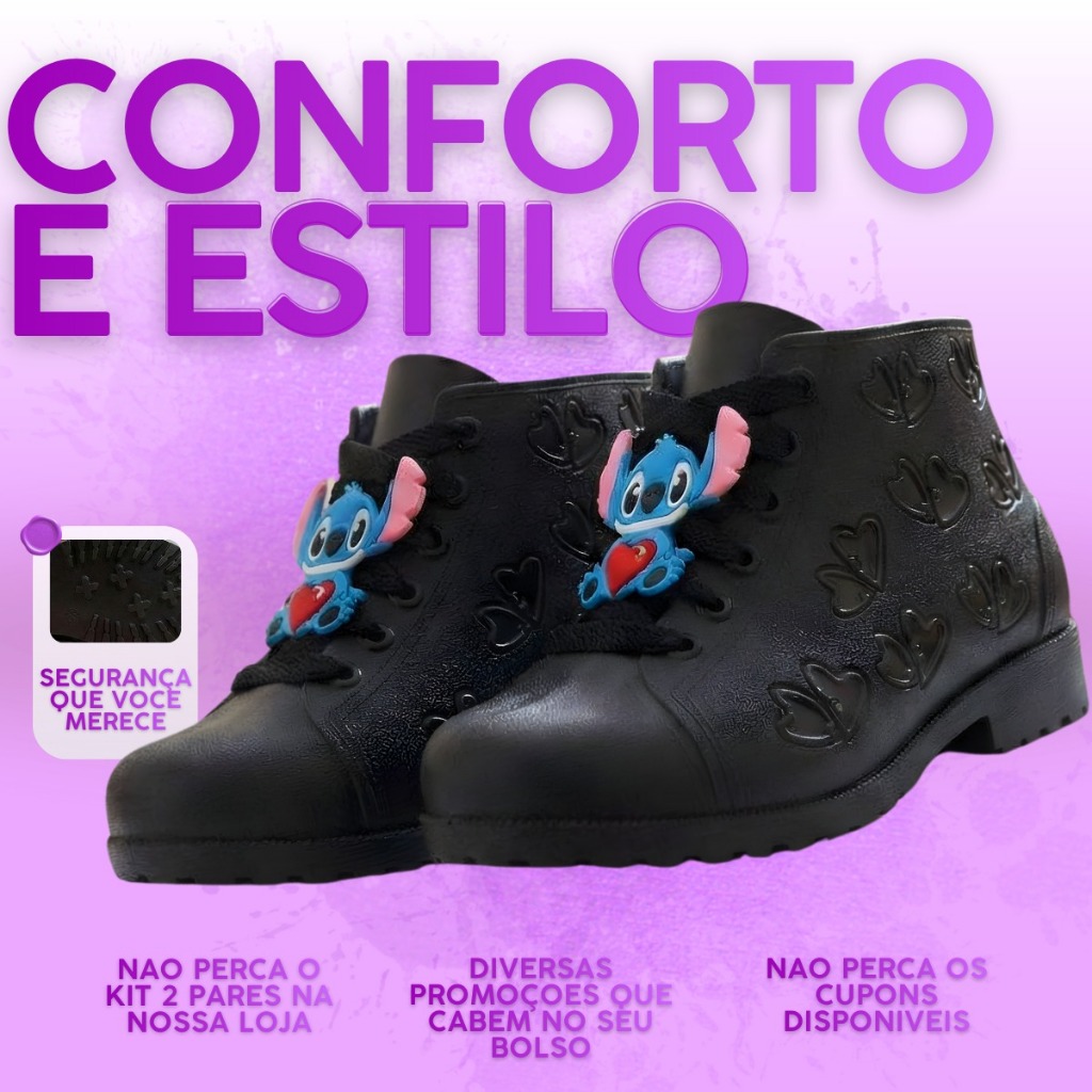 A Botinha Infantil Feminina com Stitch une conforto, segurança e um visual encantador que as crianças adoram. Ideal para escola, passeios e uso diário, esse modelo traz um toque divertido sem abrir mão da praticidade. Conta com solado antiderrapante, oferecendo mais firmeza ao caminhar, e um interior macio que garante conforto durante todo o dia. O cano curto facilita o calce e proporciona melhor ajuste aos pés infantis. Características do produto: Modelo: Botinha Infantil Feminina com Stitch Estilo: Casual / Dia a dia Cano curto Solado antiderrapante Confortável e leve Design divertido com Stitch Numeração disponível: ✔ 26/27 ao 32/33 Uma opção charmosa e confortável para deixar o dia a dia das crianças ainda mais divertido.