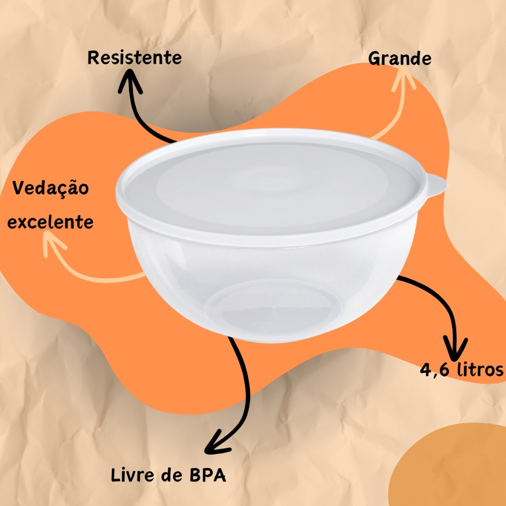 | Bowl com Tampa 4,6 Litros Grande Resistente Transparente Cumbuca Po... este produto | R$ 22,99 | 27% | 5.0/5 | 7 |