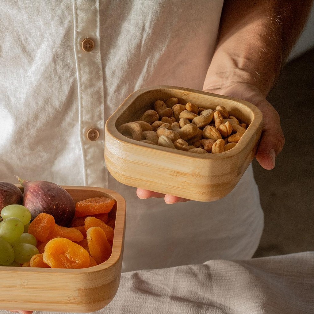 ATENÇÃO, NÃO VENDEMOS PARA CNPJ Detalhes do produto • 100% bambu, sustentável e resistente • Formato quadrado com cantos arredondados • Ideal para servir ou armazenar alimentos • Disponível em três tamanhos que se adaptam à sua rotina Informações Técnicas Altura:4,5 cm Largura:12 cm Comprimento:12 cm Peso:0.18 kg Material:BAMBU O Bowl Quadrado da Linha Lume une funcionalidade, praticidade e um design acolhedor para sua cozinha. Feito 100% em bambu, possui formato diferenciado com cantos arredondados, que traz um visual minimalista, elegante e aconchegante. Ideal para servir ou armazenar alimentos no dia a dia. Disponível em três tamanhos, se adapta a diferentes necessidades, seja na mesa, na cozinha ou na organização. Cuidados Enxágue com água abundante, evitando deixá-lo submerso na água. Após a lavagem, seque imediatamente para evitar o aparecimento de fungos e bactérias. Guarde o produto em local seco e arejado. Caso o produto apresente mofo, limpe-o com um pano umedecido Conteúdo da embalagem 1 Bowl quadrado Ou 12cm Linha Lume