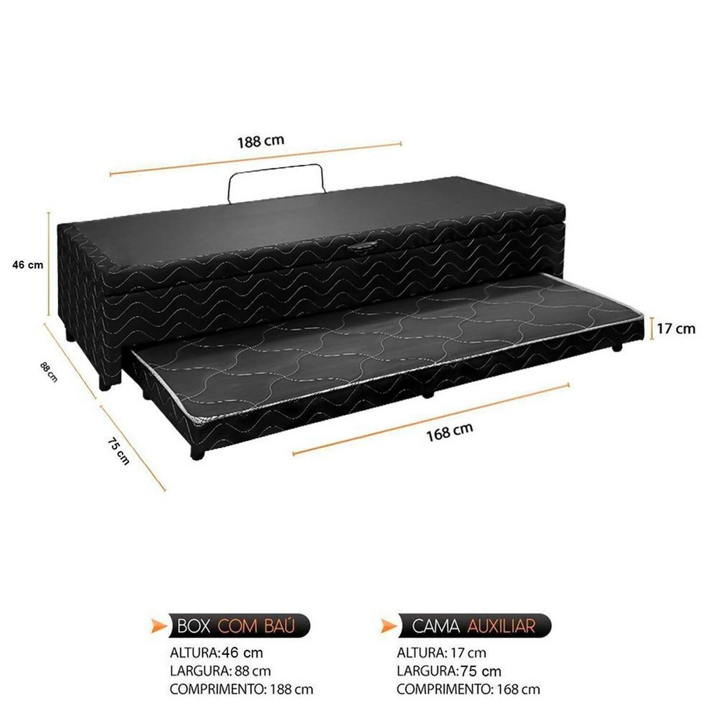 Box Baú com Cama Auxiliar Solteiro 46cm X 88cm Imperatriz