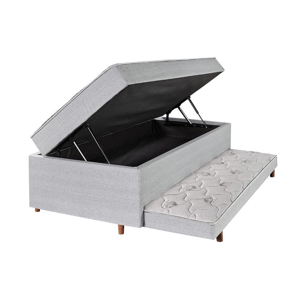 Box Baú Solteiro Mola Ensacada Firme Cama Auxiliar D28 Linho Grafite 120kg 88x188cm