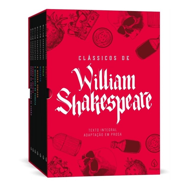 As obras mais famosas do grande autor William Shakespeare adaptadas em prosa por Júlio Emílio Braz em uma linguagem acessível e envolvente que faz o leitor viajar ao passado e conhecer o grande bardo de Avon. O box é composto por: Macbeth, O mercador de Veneza, Otelo, Romeu e Julieta, Hamlet, Sonho de uma noite de verão e A megera domada. Características: Código de barras: 7908312106911 Dimensões: 23.00 cm x 15.50 cm x 7.00 cm Edição: 1ª - 2022 Marca: PRINCIPIS (CIRANDA CULTURAL) Idioma: Português ISBN13: 7908312106911 Número de páginas: 720 Peso: 1230 gramas Faixa Etária: + 14 anos Público Alvo: Todos os públicos Encadernação: Brochura Políticas de compra: * Despachamos em até 24 horas úteis após confirmação do pagamento. * Pagamentos no boleto levam até 48 horas para confirmação. * Todos os produtos com nota fiscal eletrônica.