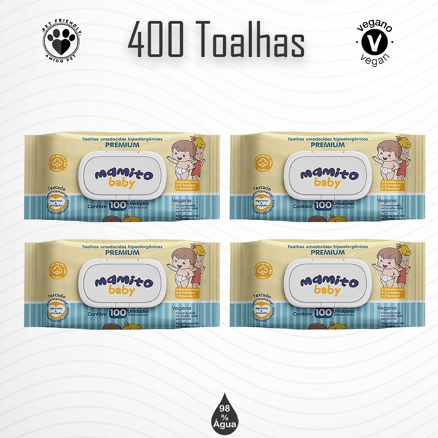 | Box com 04 Toalhas Umedecidas MAMITO BABY Premium 100 folhas este produto | R$ 29,07 | 3% | 5.0/5 | 111 |