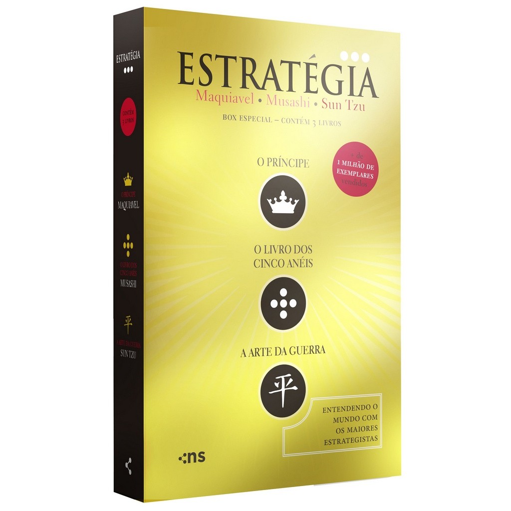 O Essencial da Estratégia é um box com três títulos famosos em todo o mundo e, que se complementam, sendo indispensáveis para qualquer pessoa que queira sair do lugar comum e se destacar na vida. São eles: "A Arte da Guerra", de Sun Tzu, "O Príncipe" de Nicolau Maquiavel e "O Livro dos Cinco Anéis" de Miyamoto Musashi reunidas em um luxuoso kit. A Arte da Guerra Esse livro é um tratado militar escrito durante o século IV a.C pelo estrategista Sun Tzu. Composto por treze capítulos, cada um abordando um aspecto da estratégia de guerra, acredita-se que esse livro tenha sido utilizado por diversos estrategistas militares ao longo da história. O Príncipe Escrito em 1513 por Nicolau Maquiavel, a primeira edição desse livro foi publicado postumamente em 1532. É, na verdade, um dos tratados políticos mais fundamentais já elaborados pelo pensamento humano. "O Príncipe" tem papel crucial na construção do conceito de Estado Moderno e, mapeia como conquistar, conduzir e manter o poder. O Livro dos Cinco Anéis Esse livro é um texto sobre Kenjutsu e as artes marciais como um todo. Escrito em 1645 por Miyamoto Musashi, ele é considerado um tratado clássico sobre a estratégia militar do Japão. Especificações: Editora: Novo Século; 1ª edição (22 de junho de 2017) Idioma: Português Capa comum: 496 páginas ISBN: 978-8542806007 Idade de leitura: 16 anos e acima Dimensões: 21,2 x 13,6 x 3,6 cm ******************************************************************************************************************* A Amoler é mais do que uma editora e livraria; somos apaixonados por histórias que inspiram, emocionam e transformam. Cada livro é escolhido com carinho, porque acreditamos que uma boa leitura pode ser um refúgio, uma aventura ou até um novo começo. Na nossa loja online, você encontra sempre livros originais e novos, perfeitos para quem busca qualidade e histórias que marcam. Dos clássicos aos lançamentos mais desejados, temos algo especial esperando por você. E sabe por quê? Porque quem ama ler, ama descobrir, sonhar e aprender. E quem ama tudo isso, ama a Amoler.