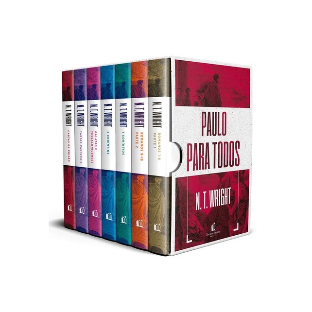 Utilizando todo seu conhecimento erudito, mas escrevendo em um estilo acessível e anedótico, Wright nos mostra a sabedoria e o desafio dos escritos de Paulo, destacando a sensibilidade pastoral e a profunda perspicácia que tornam esta coleção uma das principais referências das realizações de Paulo. Os comentários instigantes de Wright são somados à sua própria tradução do texto bíblico ― contemporânea e instigante. Wright tem um dom raro de conseguir comunicar sua compreensão e entusiasmo a não especialistas. Ele é uma das poucas pessoas vivas atualmente capazes de empreender um projeto como os comentários “Para todos”.No box Paulo para todos você encontrará os livros: Paulo para todos: 1 Coríntios Paulo para todos: 2 Coríntios Paulo para todos: Gálatas e Tessalonicenses Paulo para todos: Cartas da Prisão Paulo para todos: Romanos 1-8 - Parte 1 Paulo para todos: Romanos 9-16 - Parte 2 Paulo para todos: Cartas Pastorais “As outras séries de comentários não chegam nem perto desta.” - THE CHRISTIAN CENTURY“Bem fundamentada pelos estudos acadêmicos, acessível e profundamente contemporânea. Uma série muito bem-vinda!” - WALTER BRUEGGEMANN“Esta série de comentários de Wright é uma proeza. Toda hora eu falo para os leitores da Bíblia: ‘comecem por aqui!’” - SCOT MCKNIGHT“Tom Wright como parceiro de conversa para os pregadores de hoje é o que há de mais perspicaz e explosivo.” - WILLIAM H. WILLIMON 12x8x18 1568 Páginas