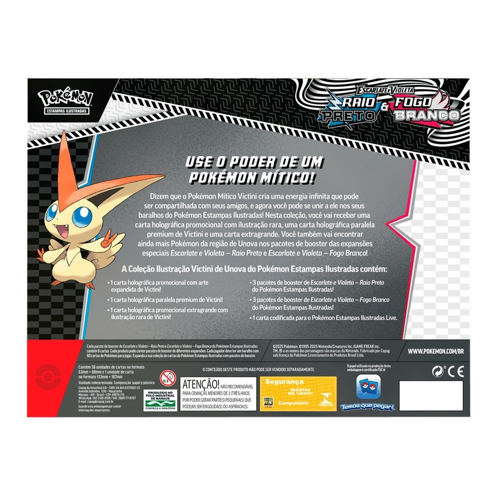 Box Pokémon Escarlate e Violeta: Raio Preto e Fogo Branco - Coleção Ilustração - Victini de Unova