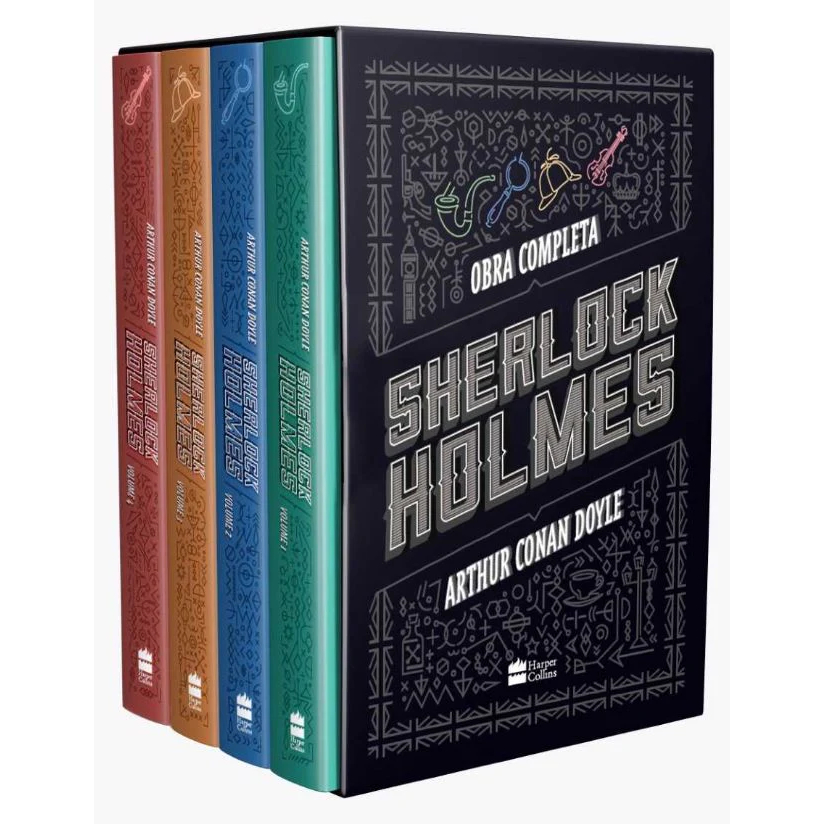 Esta obra completa reúne os quatro romances e os 56 contos sobre as aventuras do detetive mais famoso do mundo e de seu fiel companheiro, o dr. Watson.  Em 1887, o escritor escocês Ssir Arthur Conan Doyle criou Sherlock Holmes, o infalível detetive a quem os agentes da Scotland Yard recorriam para solucionar os mistérios mais intrigantes da Inglaterra vitoriana. Desde então, as aventuras do mestre da investigação atraem leitores ávidos por chegar à última página e ver o enigma desvendado.   Para desvendar mistérios, o faro e a astúcia de Sherlock Holmes levam às fontes menos óbvias, às informações mais precisas. Um modelo que influencia até hoje a literatura policial e revela fôlego para impressionar gerações de leitores através dos tempos.    Cada livro deste box de luxo contém...  Volume 1:  Um estudo em vermelho (romance) – 1887, O sinal dos quatro (romance) – 1890, As aventuras de Sherlock Holmes (contos) – 1892.Volume 2: Memórias de Sherlock Holmes (contos) – 1894, O cão dos Baskerville (romance) – 1902. Volume 3: A volta de Sherlock Holmes (contos) – 1905, O vale do medo (romance) – 1915.  Volume 4: Os últimos casos de Sherlock Holmes (contos) – 1917, Histórias de Sherlock Holmes (contos) – 1927