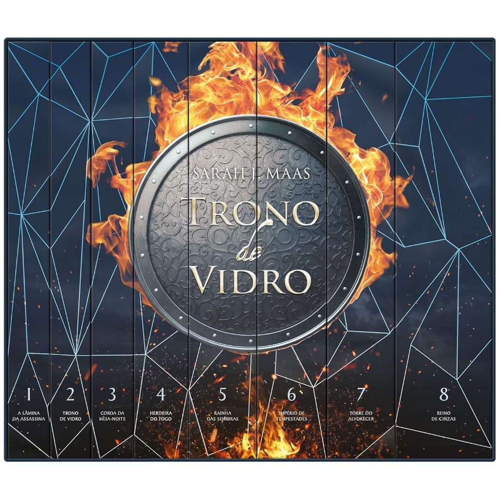 O Box Trono de Vidro traz, pela primeira vez, a série fenômeno mundial em um exuberante box rígido e livros com novo projeto gráfico. Inclui marcadores temáticos e pôster da personagem Manon Blackbeak   Trono de Vidro conta a saga de Celaena Sardothien, assassina nascida em uma terra sem magia, onde o rei governa com mão de ferro. Depois de cumprir um ano de trabalho escravo nas minas de sal de Endovier por seus crimes, ela é arrastada diante do príncipe herdeiro. O príncipe Dorian oferece à Celaena sua liberdade, mas sob uma condição: Ela deve ganhar uma competição para se tornar a nova assassina real. Seus oponentes são ladrões, assassinos e guerreiros de todo o império, cada um patrocinado por um membro do conselho do rei. Se ela derrotar seus concorrentes em uma série de eliminações, servirá ao reino por três anos como assassina e depois terá sua liberdade. A jovem aceita prontamente o desafio e começa as sessões de treinamento com o capitão da guarda, Westfall. Treinar é desafiador e emocionante, mas a vida na corte é um tédio sem fim. No entanto, as coisas ficam mais interessantes quando o príncipe Dorian começa a mostrar sentimentos por ela. Quando um a um, outros competidores aparecem mortos em circunstâncias obscuras, fica claro que algo bastante maligno mora no castelo de vidro - e está lá para matar. Celaena decide investigar antes que ela se torne a próxima vítima, e essa busca a leva a descobrir um destino muito maior do que ela poderia imaginar.   “Uma leitura fantástica.” ? Publishers Weekly   “Fãs de fantasia épica vão mergulhar nessa série e nunca mais vão querer sair. ”? Resenha estrelada no Kirkus Reviews para Coroa da Meia-Noite   “Uma leitura fantástica de proporções épicas.” ? USA Today sobre Coroa da Meia-Noite   “Com assassinatos, traições, amor e magia, este romance tem algo para corresponder aos interesses de todos.” ? RT Book Reviews sobre Coroa da Meia-Noite   “Impossível parar de ler.” ? Kirkus Reviews sobre Rainha das sombras