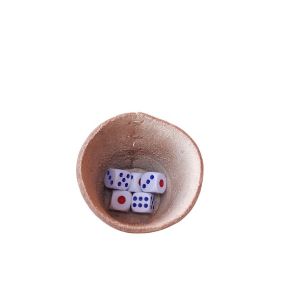 Copo em couro artesanalmente, costurado a mão para jogos de tabuleiro, bozó. Acompanha 6 (seis dados) de 16 mm.