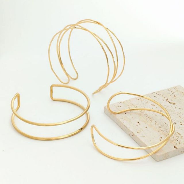 Braçadeira aberta ajustável com personalidade exagerada e multicamadas ocas