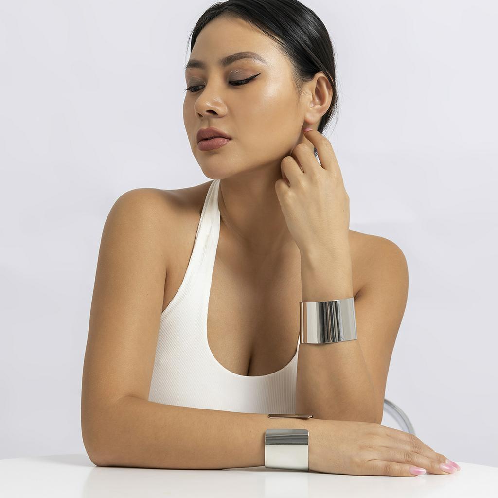 Bracelete de Metal Exagerado Feminino com Prego Aberto 2024 Acessórios de Moda para Mulheres