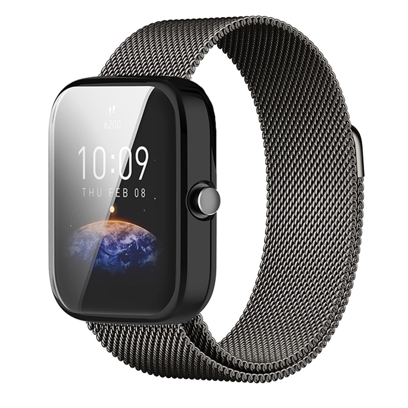 Bracelete Milanês + Protetor De Caixa Para Amazfit Bip 5 / Bip 5 Unity / 3 3Pro / U Pro / S Lite
