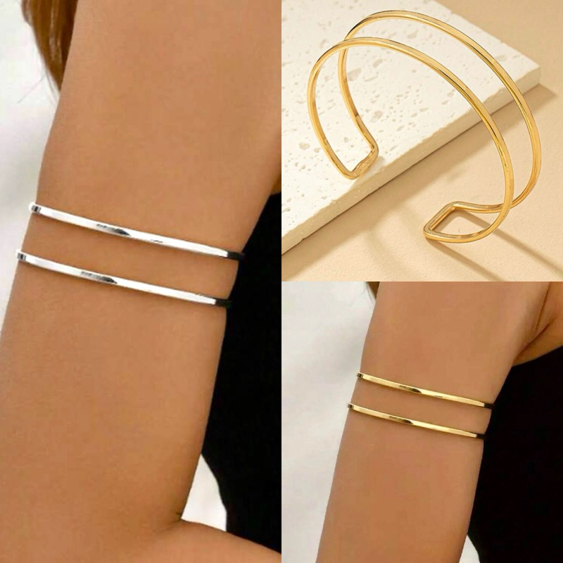 Bracelete Minimalista Duas Voltas Dourado Indiano Pulseira de Braço Unissex Feminino Delicado da Moda Presente SHP45