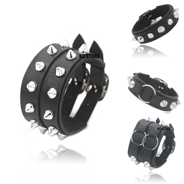 Bracelete Pulseira Punk Rock Com Espinhos Spike Regulável Grosso couro preto masculino feminino