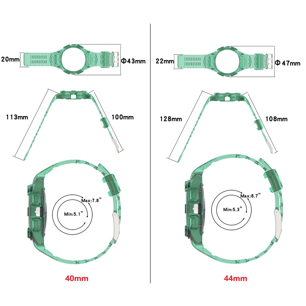 Fale com o atendimento ao cliente quando não tiver certeza do ajuste ou não do relógio!! Compatível com: Relógio Galaxy Samsung 4/5/6 40mm 44mm Comprimento da Cinta: Ajuste 5,1”-7,8" Ajuste 5,3 "-8,7" Material de alta qualidade: material de alta qualidade: O produto usa material TPU transparente de alta qualidade, a aparência é muito simples e generosa, adequada para pessoas de todas as identidades, e também para pessoas de todas as idades. Obs: Se você não pode aceitar aberração cromática de cor, considere antes de encomendar o produto O pacote inclui: Alça