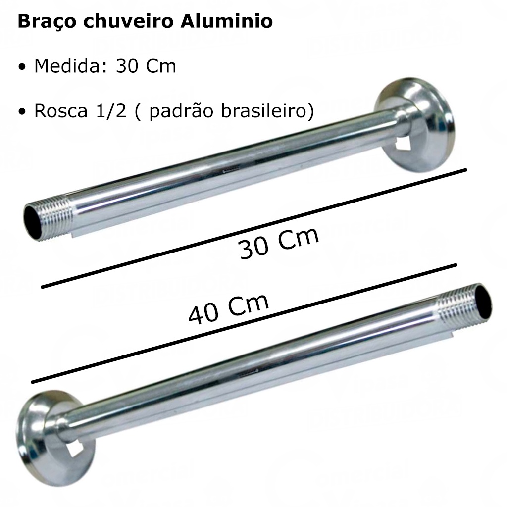 Braço Conector Para Chuveiro Elétrico Ducha PVC 1/2Pol. Branco Ou Cromado 30cm Parede Extensor