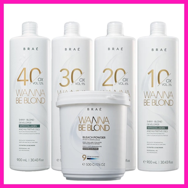 Braé Wanna Be Blond Água Oxigenada 900 ml + Pó Descolorante 500gr Linha Profissional