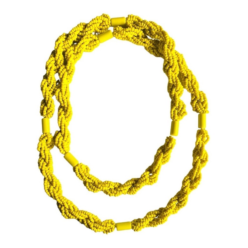 Brajá Guia 8 Fios Trançados 7 Firmas Amarela Umbanda Candomble Oxum