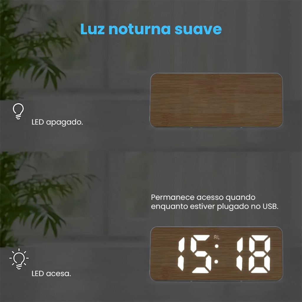 ⏰ Estilo, tecnologia e praticidade para o seu dia a dia! O Relógio Despertador Digital LED de Bambu 🪵 é a união perfeita entre design sofisticado e funcionalidade. Com acabamento elegante e painel de LED luminoso 💡, ele traz um toque moderno para qualquer ambiente – quarto, sala ou escritório. Seu display exibe hora, data e temperatura 🌡️ de forma clara, com ajuste de brilho em 3 níveis para maior conforto visual. ✅ Principais Benefícios: 🔹 Alarme Personalizável – Ajuste frequência sonora e dias de acionamento. 🔹 Multifuncional – Hora, data e temperatura em um só visor. 🔹 Dois Modos de Alimentação – Funciona com pilha AAA (não inclusa) ou cabo USB (incluso). 🔹 Estilo Minimalista – Combina com qualquer decoração. Além de lindo, ele é compacto, leve e resistente 💪, ideal para te acompanhar no dia a dia. Seja para acordar na hora certa ou lembrar de compromissos importantes, este relógio vai facilitar sua rotina com muito mais estilo. ✨ Transforme suas manhãs! Adquira agora o Relógio Despertador LED de Bambu e comece cada dia com pontualidade e elegância.