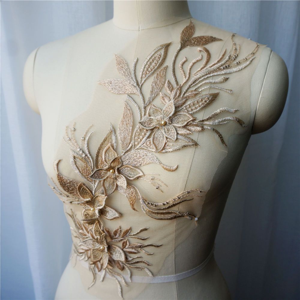 Branco Preto Cinza 3D Flor Borla Renda Tecido Vestido Apliques Gola Bordada Malha Costura Remendo Para Casamento Roupas vale a pena?